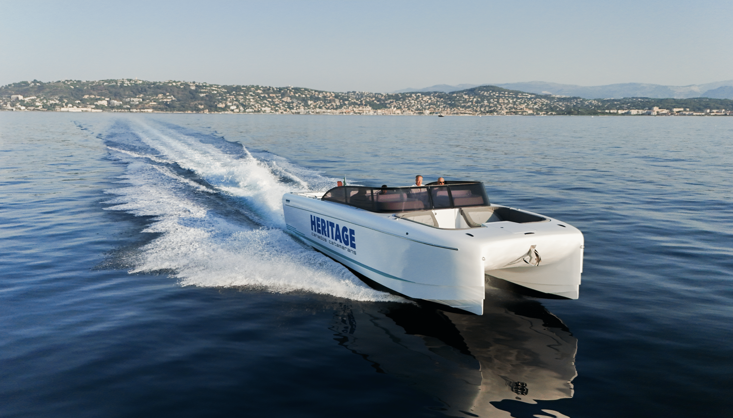 Heritage is synonymous with fun, convivialitý and good times at sea. That’s why we’ve created easily accessible storage compartments so you can take all your toys aboard. At the bow, on the port side, a 170-liter / 45 US Gal. trunk and under the aft sun pads, the two holds are simply gigantic. Inside, you’ll have direct access to your battery chargers, and the volume is such that you’ll be able to stow all your toys. But despite all the designer’s hard work, what you’ll appreciate most will surely be the boat’s maneuverabilitý. Turning like a race boat is a thrill you’ll never feel on any other boat. The excitement felt at the helm is unparalleled. You’ll feel the sensation of a boat turning flat out even at high speed. The compression provided by the air packing in the tunnel gives an incredible feeling of safetý and comfort.